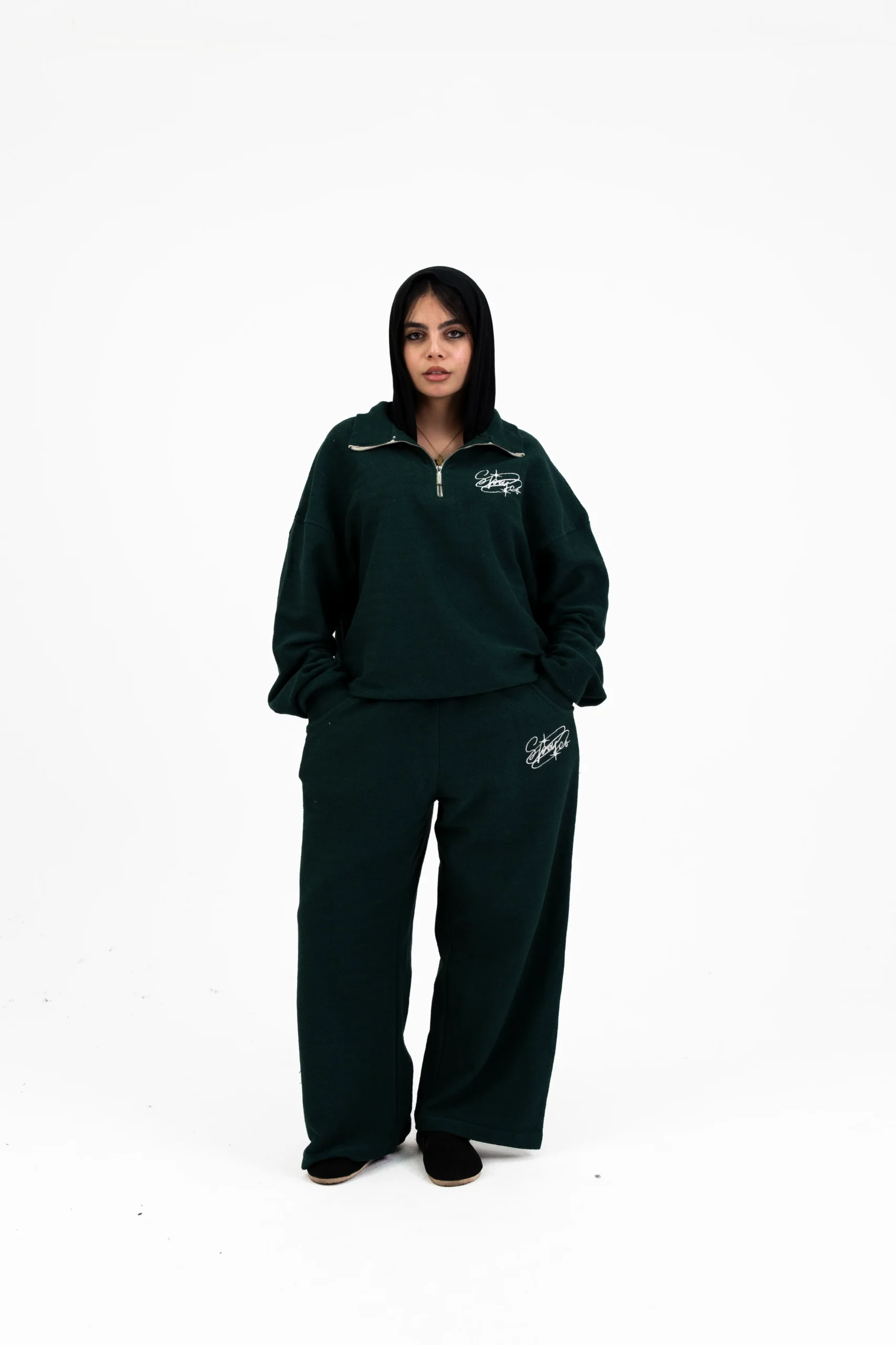 OLIVE GREEN QUARTER ZIPPER SET